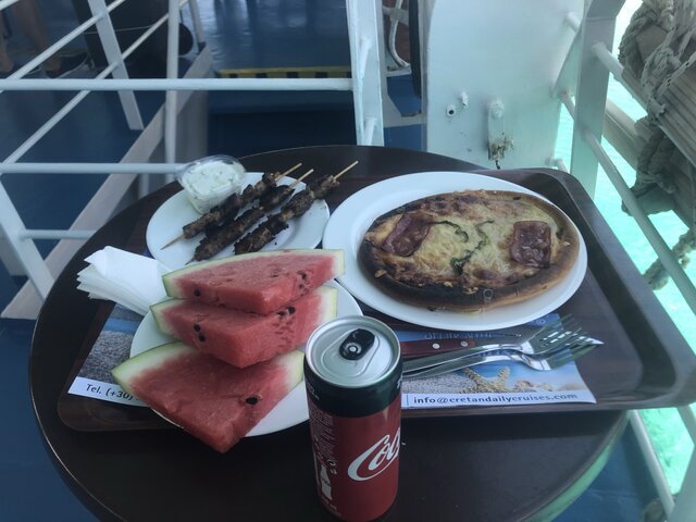 (저희는 그람부사 해변에서 약간 일찍 돌아와서 먼저 먹었습니다.) - 점심 식사에 다른 옵션이 없어서, 배에서 먹어야 하는데 위의 사진처럼 먹고 12.30유로 나왔습니다.