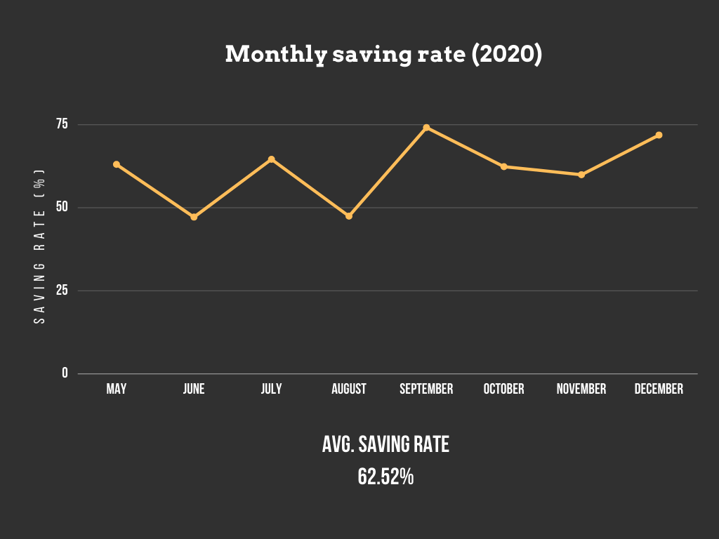 이를 감안한다면, 대부분의 달에 무난하게 목표했던 60% 대의 저축률을 유지하였습니다.